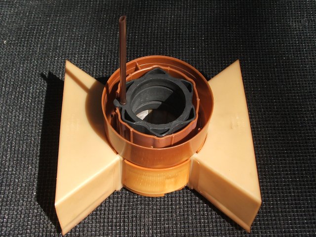Hier der entsprechende Bajonettverschluss des Unterteils, mit eingebauten Stautrichtern: