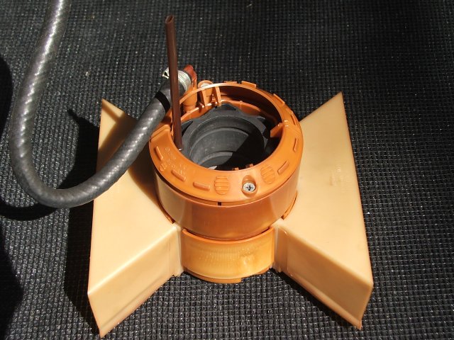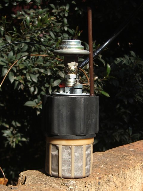 - Pumpe einfach am "Pilz" (Schwingungsdämpfer) greifen und mitsamt der Vorlaufleitung und dem Kabel aus dem Tank heben.