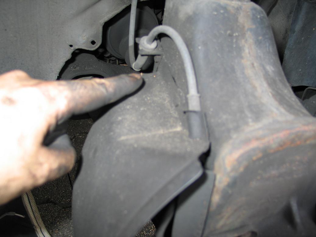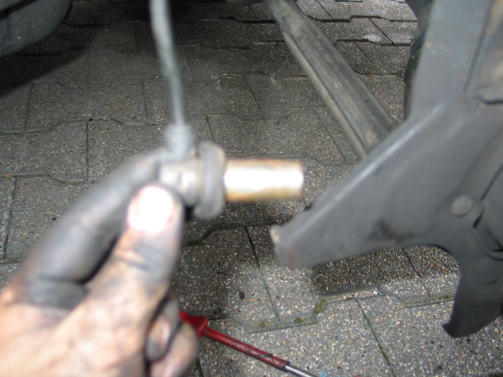 - Nun kommt wieder mein langes Rohr zum Einsatz. Einfach zwischen Stabilisator und Hilfsrahmen ansetzen, kurz nach unten drücken und schon ist das Federbein frei.