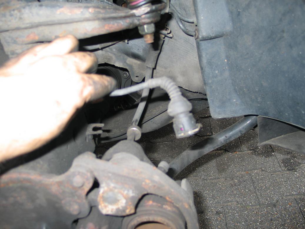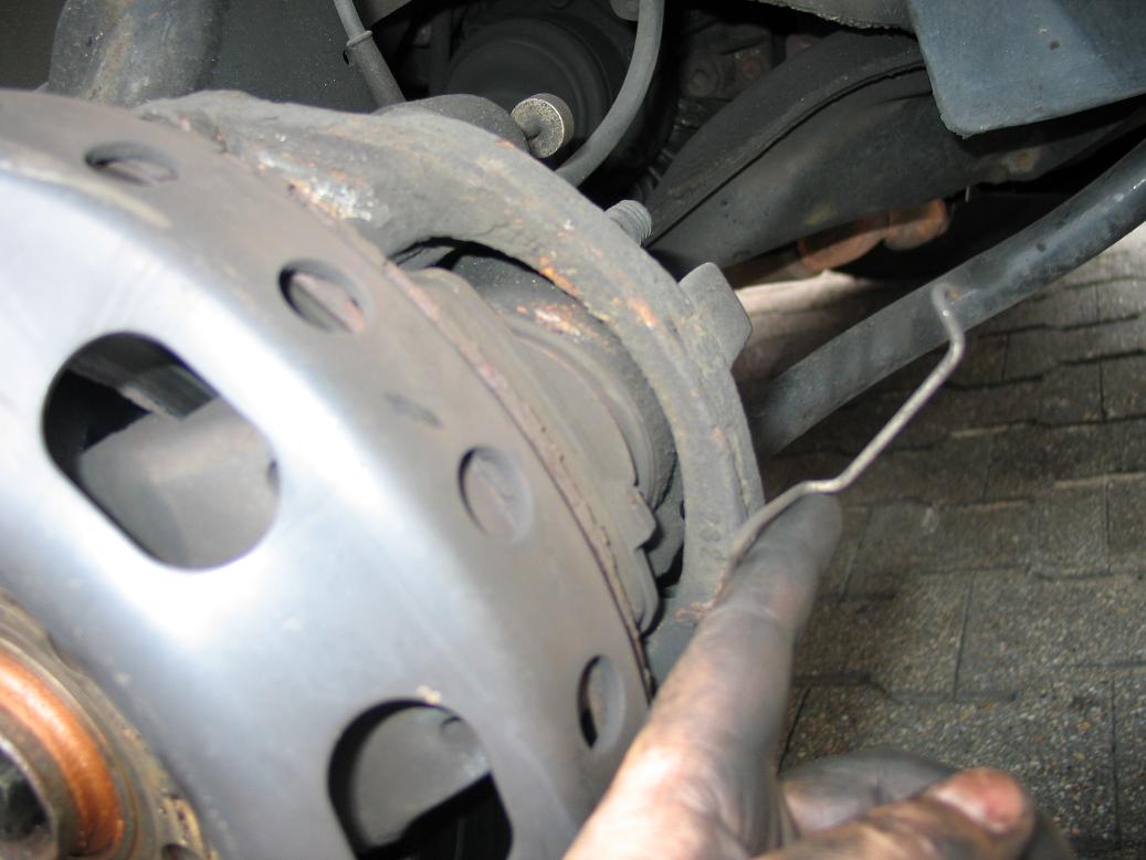 - Jetzt ist die Bremsbelagsverschleißanzeige dran. Die Kabel ausklipsen und den Stecker zur Seite legen.