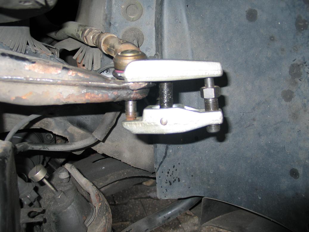 - Nun kommt die Spurstange dran. Hierzu habe ich einen Abzieher der Fa. Hazet verwendet. War zwar etwas teuer, aber der hält und mit lautem Knall ist der Bolzen herausgesprungen.