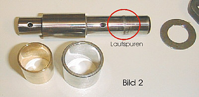 Müssen die Lagerbuchsen ersetzt werden, können sie mit einer Schraube M6, einer Unterlegscheibe (Ø ca. 17,5 mm, nicht größer als 17,9 mm) und Mutter herausgezogen werden. Die Lagersitze dürfen dabei nicht beschädigt werden. Neue Buchsen nicht einschlagen, sondern sauber einpressen.