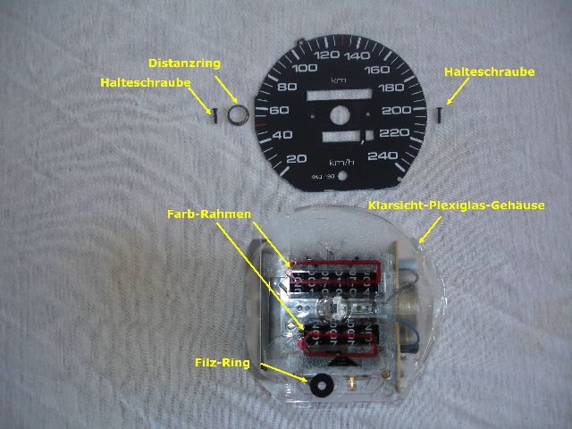 - Befestigungs-Schrauben für die Tacho-Mechanik lösen und Klarsicht-Plexiglas-Gehäuse abnehmen *(BILD_011)*