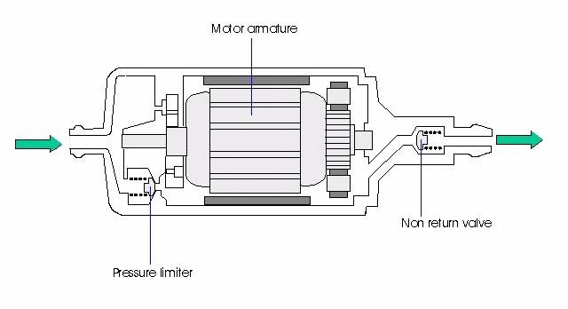 The normal operating pressure within this system is approximately 5 bar (75 psi) and at this pressure the current draw on the pump is 5 to 8 amps. Fuel passing across the fuel pump's armature will be subjected to sparks and arcing, this on the surface appears quite dangerous, but the absence of oxygen means that there will not be an explosion!