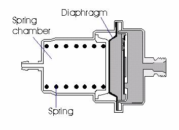 The Accumulator The accumulator is the first of the components in the fuel system after the pump. This unit has an important role to fill in the operation of the Bosch K Jetronic system. Its first job is to help smooth out any pulses in the flow of the fuel, this is achieved by passing the fuel through a series of baffles and into a chamber giving it slight capacitance and a much smother flow. Its other and possibly more important role is to maintain pressure within the system when the fuel pump has been switched off; this is achieved by the accumulator spring and diaphragm pushing against the fuel. For the duration that the engine is running, the diaphragm will be against its stop within the spring's chamber. When the engine is stopped and all of the non-return valves close, the spring pressure against the diaphragm will maintain the residual or holding pressure and overcome any slight seepage.
