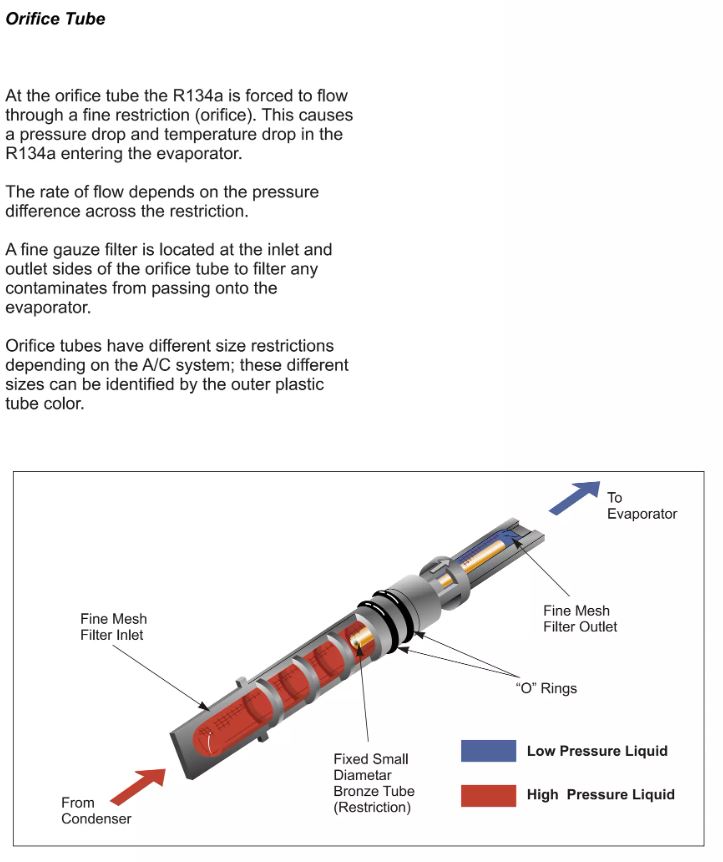 Im Forum werden sie oft als „Expansionsventil“ bezeichnet. Technisch handelt es sich bei dieser Bauart nicht um ein thermostatisches Expansionsventil, sondern um eine feste Drossel / Orifice Tube.