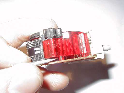 Dieser erfolgt sinngemäß in umgekehrter Reihenfolge. Die Nasen des roten Kunststofflichtleiters (2) müssen unter Umständen mit einem scharfen Messer im Durchmesser verkleinert werden, damit Sie in die Platine passen. Am sinnvollsten ist die Einrastkugel (8) in den Kunststofflichtleiter zu setzen und die Platine mit dem Poti (5) von oben drüberzustülpen. Wenn der Kunststofflichtleiter nicht fest sitzt, kann er mit Heißleim fixiert werden.